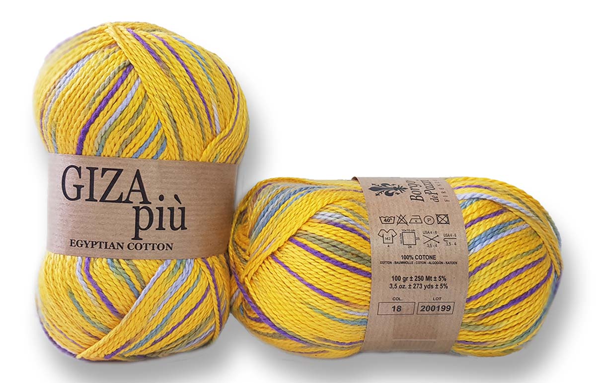 Giza és Giza Piú fonalak a Nílus-deltában termesztett „Giza 86” kódjelű gyapotból készülnek, melyet egyedülállóan kézzel takarítanak be, és válogatnak, ezáltal óvva a különleges minőségű gyapotszálakat a sérüléstől. Ez az alapanyag tette híressé az egyiptomi pamutot. Ma már minden pamutholmira, amely Egyiptomban termesztett gyapotot tartalmaz, ráírják, hogy egyiptomi pamut, pedig az ország gyapottermelésének ez a különleges alapanyag csupán néhány százalékát teszi ki. A Borgo de Pazzi Giza fonalai valóban a legkülönlegesebb egyiptomi gyapotból készülnek, amely összetéveszthetetlen tapintásáról, és viselési komfortjáról azonnal megismerhető.
