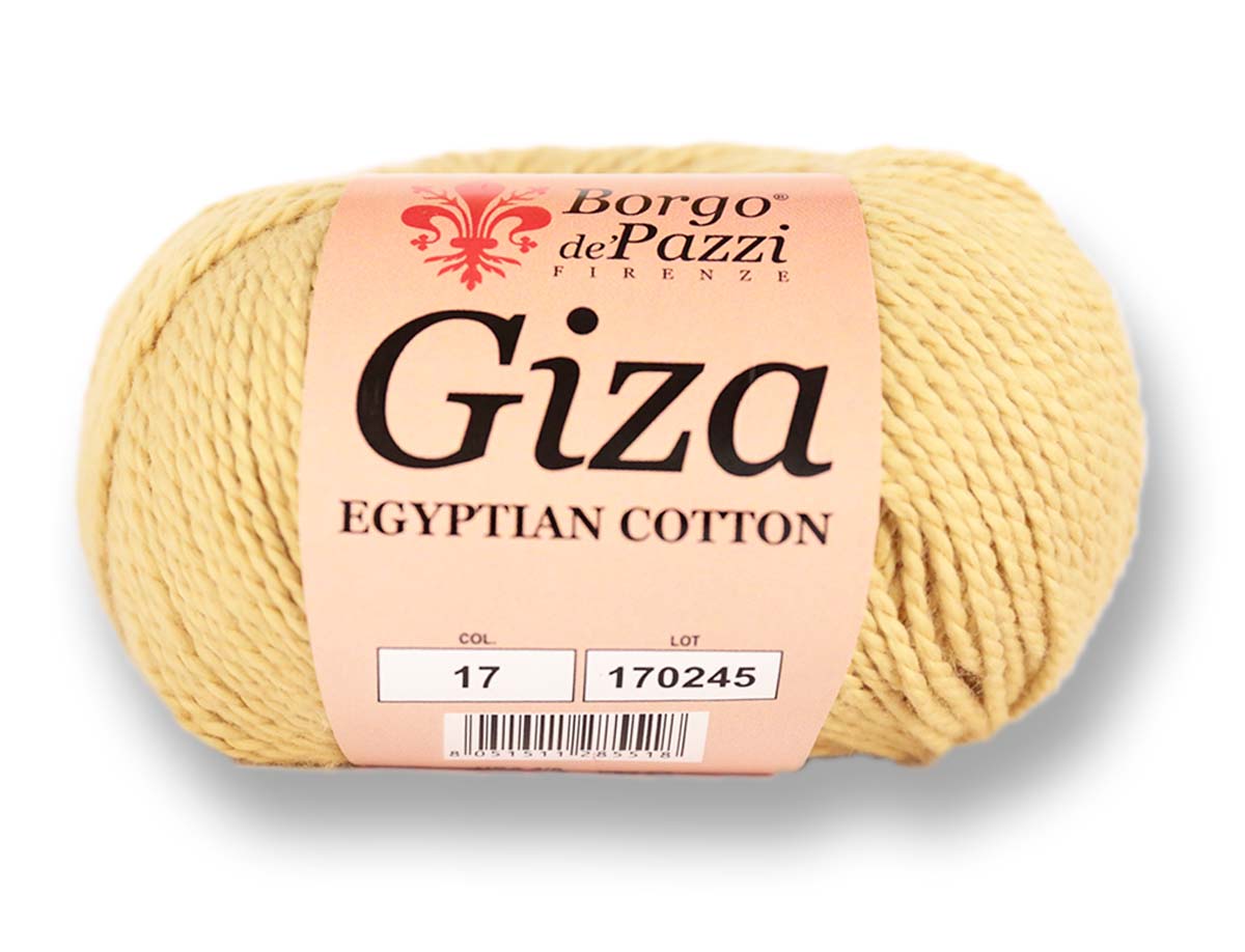 Giza és Giza Piú fonalak a Nílus-deltában termesztett „Giza 86” kódjelű gyapotból készülnek, melyet egyedülállóan kézzel takarítanak be, és válogatnak, ezáltal óvva a különleges minőségű gyapotszálakat a sérüléstől. Ez az alapanyag tette híressé az egyiptomi pamutot. Ma már minden pamutholmira, amely Egyiptomban termesztett gyapotot tartalmaz, ráírják, hogy egyiptomi pamut, pedig az ország gyapottermelésének ez a különleges alapanyag csupán néhány százalékát teszi ki. A Borgo de Pazzi Giza fonalai valóban a legkülönlegesebb egyiptomi gyapotból készülnek, amely összetéveszthetetlen tapintásáról, és viselési komfortjáról azonnal megismerhető.